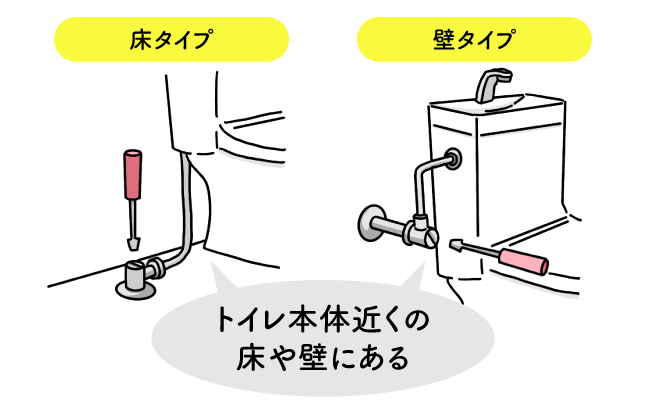 掃除を始める前に、止水栓をマイナスドライバーで閉め、水を止めます。レバーを回して水を流し、タンク内の水を抜きます。