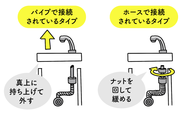 パイプで接続されているタイプは、蓋を真上に持ち上げて外します。